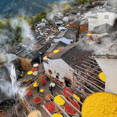篁岭古村,属典型山居村落,周边千棵古树环绕,万亩梯田簇拥,造就了世外桃源般的山居田园生活。 这里自然环境优美,历史人文厚重,是古徽州历史文化名村。