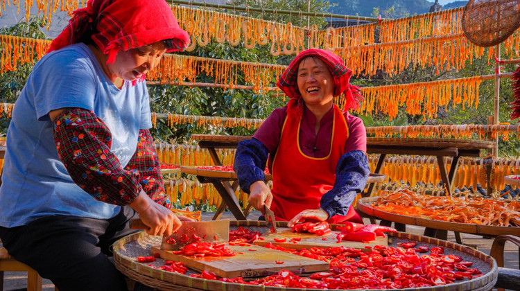 挂在山崖上的篁岭古村,地无三尺平,数百年来,村民早已习惯用平和的心态与崎岖的地形“交流”,绘就出了一处“晒秋人家”风情画。
