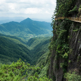 青云栈道位于海拔约1500米的明月山山顶,悬于绝壁之上,全长约3100米,这是明月山景区的精华景点。