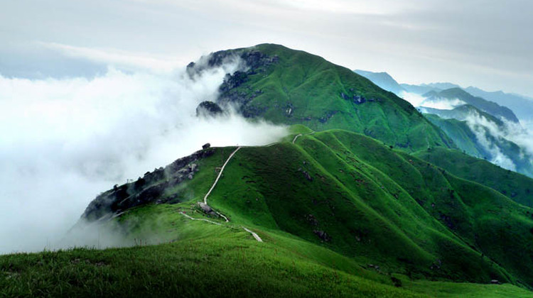 高山草甸是武功山景区的独特之处,其面积之广在世界同纬度名山中都是少有的。这里大规模的草甸绵绵于海拔1600多米的高山之巅,穿云入雾,真可谓“天上草原、人间仙境、北国风光、绿色家园”,令人向往。高山草甸从景色优美的发云界直至金顶高峰,连绵不断二十余公里,面积广阔。春季,鲜嫩的草芽破土而出,漫山遍野点缀着星星点点的野花,金红的云锦杜鹃、洁白的野蔷薇竞相绽放;盛夏时节,草甸犹如碧绿的海洋,清风拂过,草浪翻涌;秋日里,草甸逐渐染上金黄,与远处苍翠的山林、湛蓝的天空相映成趣;寒冬降临,皑皑白雪覆盖草甸,银装素裹间尽显苍茫大气。另外,高山草甸的日出也是让人震撼的,当红日从天边慢慢升起,起伏的山峦在晨曦的照耀下,犹如妖娆的身体曲线,婀娜多姿。