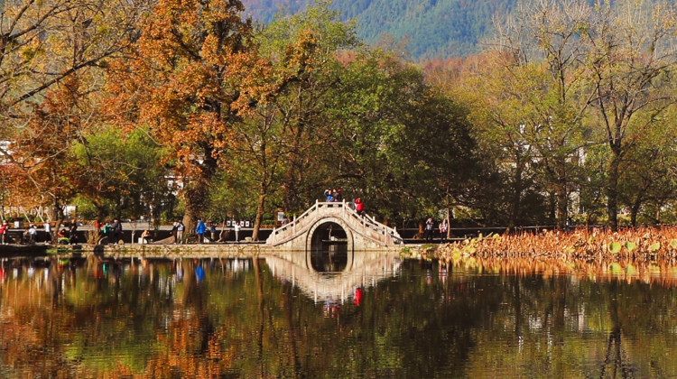 先欣赏位于宏村景区南端的精华景点之一南湖,是开凿于明万历丁未年(公元1607年)的弓形人工湖,水面开阔,穿湖而过的画桥为电影《卧虎藏龙》里李慕白牵马走过的地方。湖北岸有宏村南湖书院,清朝时把原来湖边的六所私塾合并为一个书院,所以书院显得非常宽敞。看完南湖向北走,可顺道游览宏村-敬德堂、汪大燮故居(振绮堂)。