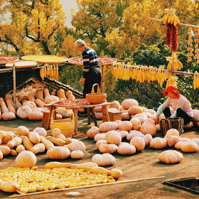 立秋一到,篁岭古村就成了一个天地晒场。来晒秋人家赏红枫,欣赏屋顶晒秋,枫林尽染,体验民风民俗,手摇风车、套南瓜等,感受晒秋人家的乡愁韵味。