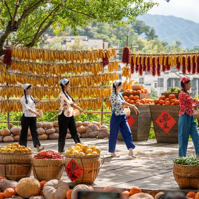 立秋一到,篁岭古村就成了一个天地晒场。来晒秋人家赏红枫,欣赏屋顶晒秋,枫林尽染,体验民风民俗,手摇风车、套南瓜等,感受晒秋人家的乡愁韵味。