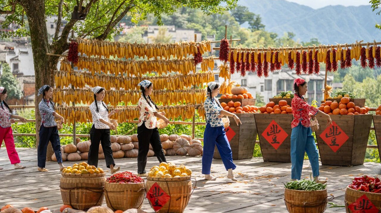 挂在山崖上的篁岭古村,地无三尺平,数百年来,村民早已习惯用平和的心态与崎岖的地形“交流”,绘就出了一处“晒秋人家”风情画。