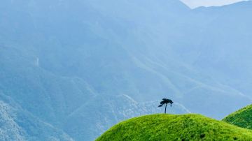 走在福星谷的步道上,沿路生态很好,石景有形似福星的福星岩、像心脏的许愿石。点将台和问道台是一览后面千米悬空木栈道的位置,很适合拍照。不过由于地势险,地方小,人多的时候要注意安全。福星谷步道尽头便是千米木栈道,结束了攀登,走在平整的栈道上正好能歇口气。这段栈道也是条观景长廊,不仅能看山峦起伏,还能欣赏武功山特有的江西杜鹃、独蒜兰等植物,远眺森林梯田。路上的悬索桥和玻璃观景台有些惊险,如果恐高,悬索桥旁边也有普通步道可以通行。到达二级索道下站,乘索道上去,再步行一会儿就能见到武功山独特的高山草甸景观和千年祭坛。