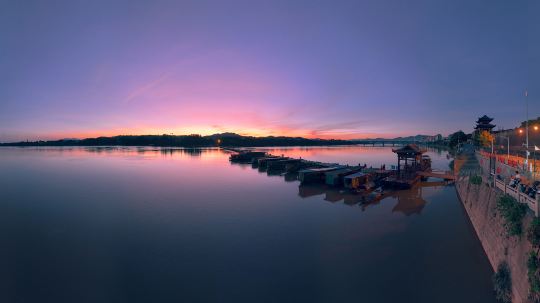 赣州古浮桥以船作桥,古意盎然,走在桥上,略感微微的摇晃之感,颇有生趣。早晨或黄昏,看当地淳朴居民在桥上或赶路,洗衣,钓鱼,充满平和的生活气息,柔和的场景中,场景如诗如画。