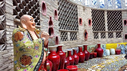 中国镇物文化馆位于灵宝仙街入口处,墙体采用马头墙的形式,颇具徽派建筑风格。馆内为游客展现中国自古流传的镇物文化,设有有展览区、零售区、工坊区,让游客在观赏古代镇物的同时深入理解镇物文化。