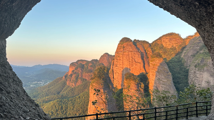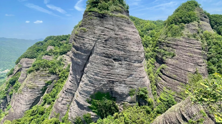 南武当山景区位于江西省赣州龙南县武当镇境内,雄跨赣粤交界,主峰海拔864米,是以丹霞风光和佛教文化为一体的风景名胜区。南武当山景区为典型的丹霞地貌,以丹霞峰丛、峰林地貌景观为特色,九十九座丹霞奇峰平地突兀,群岩涌秀,孤峰挺拔林立,形如利剑,直指天穹。一座座千姿百态的山峰,构成一幅壮美的山水画卷,有“十里画廊”的美誉,沿着105国道徐徐展开。