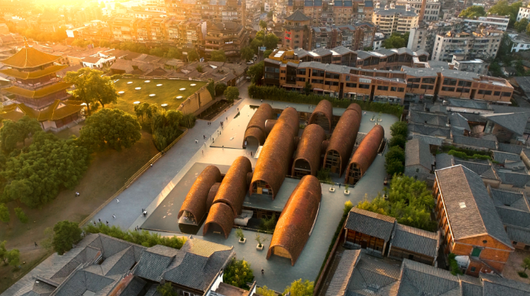 景德镇御窑博物馆的造型就是以“窑”的形态展现的,多个曲面拱体结构,红色砖墙具有古朴的气息。馆内的展品主要来自御窑厂历代官窑遗址所取得的重要陶瓷考古成果以及发掘的各个时期的重要遗物。