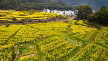 三月底,婺源篁岭景区二期高岭梯田花海接力上线,由于海拔落差大、温度低,加上晚熟油菜花品种,使得花期较晚,二期花海可持续至4月中旬。