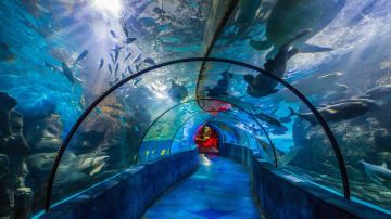 赣州极地海洋世界位于章贡区水西黄沙坳105国道旁,设有98个展缸,总水体25000多吨,展示白鲸、北极熊、海豚等世界濒危物种及国家一二级保护动物鲟、扬子鳄、鱼类等300多个品种上万尾(只)海洋生物。设有九大展区、三大表演、五大互动;亚马逊热带雨林区、潮间带区、海洋珊瑚礁鱼区、凶猛鲨鱼区、海底隧道区、极地动物区、梦幻水母区、科普展示体验区等;海豚湾剧场、白鲸之恋剧场和美人鱼剧场,突出海狮、海豚、白鲸、美人鱼和人鲨共舞表演。同时,开展潜水、海豚声波康复体验、钓海龟、喂海豹等互动体验活动。