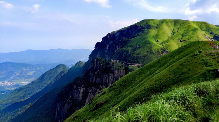 萍乡武功山风景区以武功山经典的高山草甸为主,一般来武功山徒步、赏景的游客都会选择萍乡。景区包含羊狮幕、金顶、发云界景区、九龙山四个部分,其中,羊狮幕正在开发中;金顶有完善的步道和索道上下山,是武功山开发完善的游览线路。