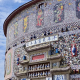 浮梁县新平村瓷宫位于景德镇浮梁县新平村,是一个以“瓷器”为材料所打造的建筑,整个浮梁县新平村瓷宫耗费了6万多件瓷器,全身镶嵌了数万件各色瓷片、瓷瓶、瓷盘,主要有景德镇四大名瓷:青花、玲珑、粉彩和颜色釉。瓷器一半嵌入墙体,摆放成各种造型,风格别出心裁,大胆粗犷。“宫殿”上还镶嵌了大量大小不一的瓷板画。装饰所用瓷器都是老人数十年积累之物,其中多为上世纪80年代柴窑烧制,不乏精品。