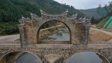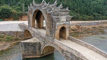 太平桥位于杨村街北面三里许的太平江上,为两孔三墩、四拱双层重叠组合石拱桥。该桥重建于清嘉庆至道光年间,主体桥身完好。重建的太平桥,造型奇特,用工精细,四拱重叠组合,分砖木和砖石双层结构,全长50米,面宽4米,通身高17.2米。下层两孔三墩,以精磨花岗石为料,桐油、石灰、红糖、糯米浆为灰浆,精工砌筑而成。