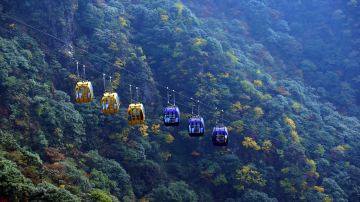 中庵索道的起点位于石鼓寺,运行时间大概15分钟,终点位于中庵紫极宫。乘坐索道,游客可以在短短几分钟内从山脚抵达山腰,沿途欣赏到层峦叠嶂的山景和苍翠欲滴的森林。索道车厢设计现代,视野开阔,游客可以透过大面积的玻璃窗,俯瞰脚下的美丽景致,感受大自然的壮丽与宁静。