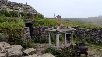 二级索道上站去到高山草甸的路上有几处值得一看的奇石景观,诸如像一个紧握的拳头的“武功神拳”、威严深沉的“武功山神”等,顺着游步道穿越草甸,草甸上散落的四处古祭坛是古人用来人与上苍沟通的纽带,已有约1700年历史,是武功山的标志性景观。再往前几十米便是江西最高峰的金顶了,这里有一块世纪之碑,碑的底座是萍乡地图,让人感觉整个江西都在你的脚下。