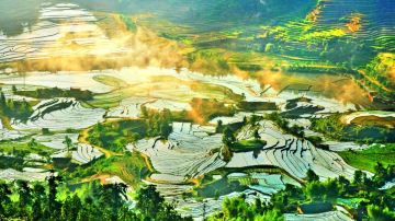 特色:全球重要农业文化遗产,垂直落差近千米的客家梯田,春看镜面水田/秋赏金色稻浪