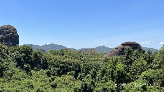 云锦披不得:此峰若一面色彩斑斓的云锦,峰前的河面也被山色染成五彩的。此峰陡峭如壁,宽幅百丈,宽大、高峻、平整,不愧是丹霞地貌杰出的代表作。