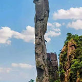 巨蟒出山是一座象形石柱,经大自然长期的风化与重力作用而形成,峰壁峭立,顶部稍平,颈部略细,就像一条破山而出的巨蟒,可谓是大自然的鬼斧神工。它与东方女神观遥遥相对,从金沙索道(东部索道)上山后到南清园景区游玩途中便可欣赏到。
